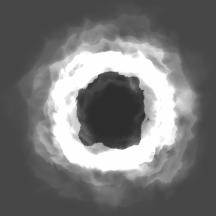 By using a multiplicative shader we are going to emit a single smaller black circle over the white one. The exact color is “000000AF“. Something like this.